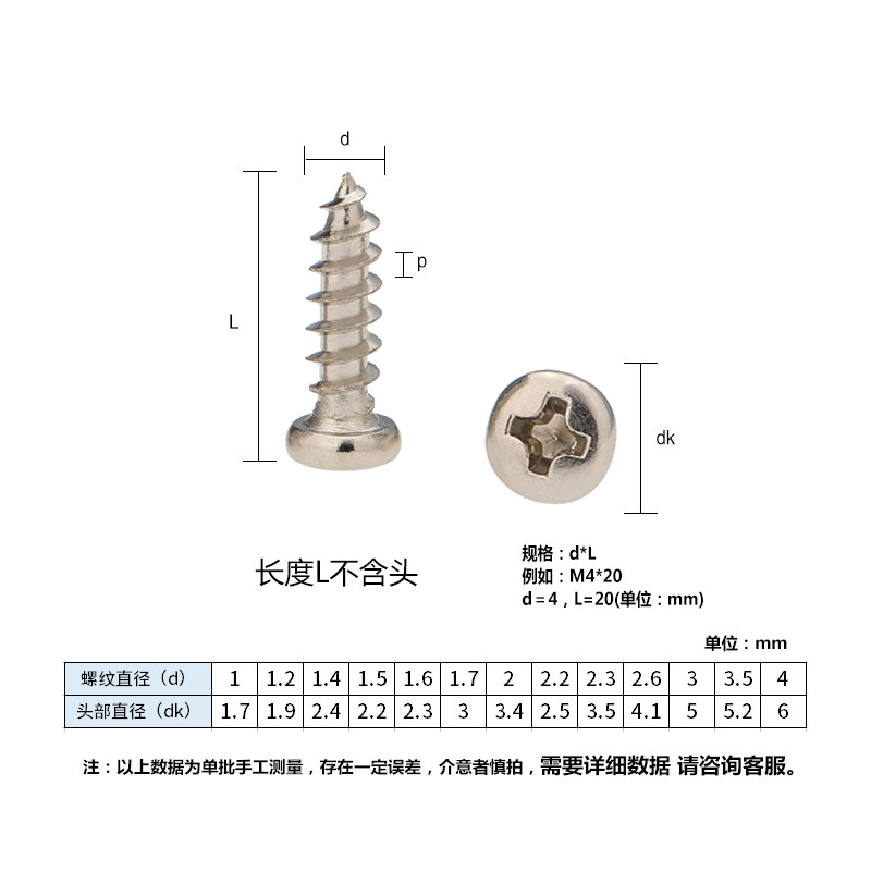 镀镍PA盘头自攻小螺丝十字圆头螺钉m1.2m1.4m1.7 3.5x4x5x6x8x10