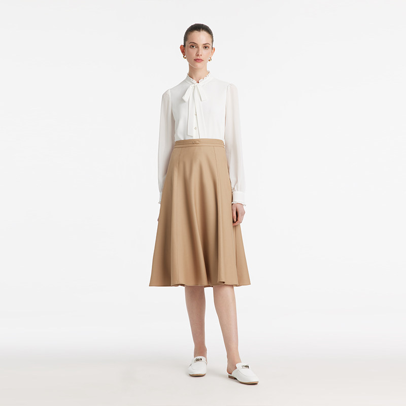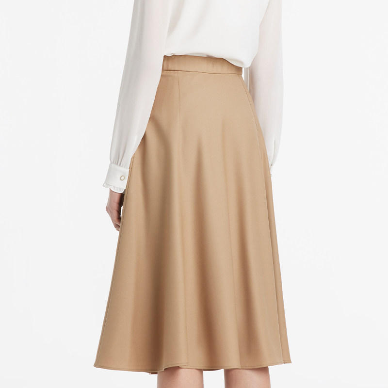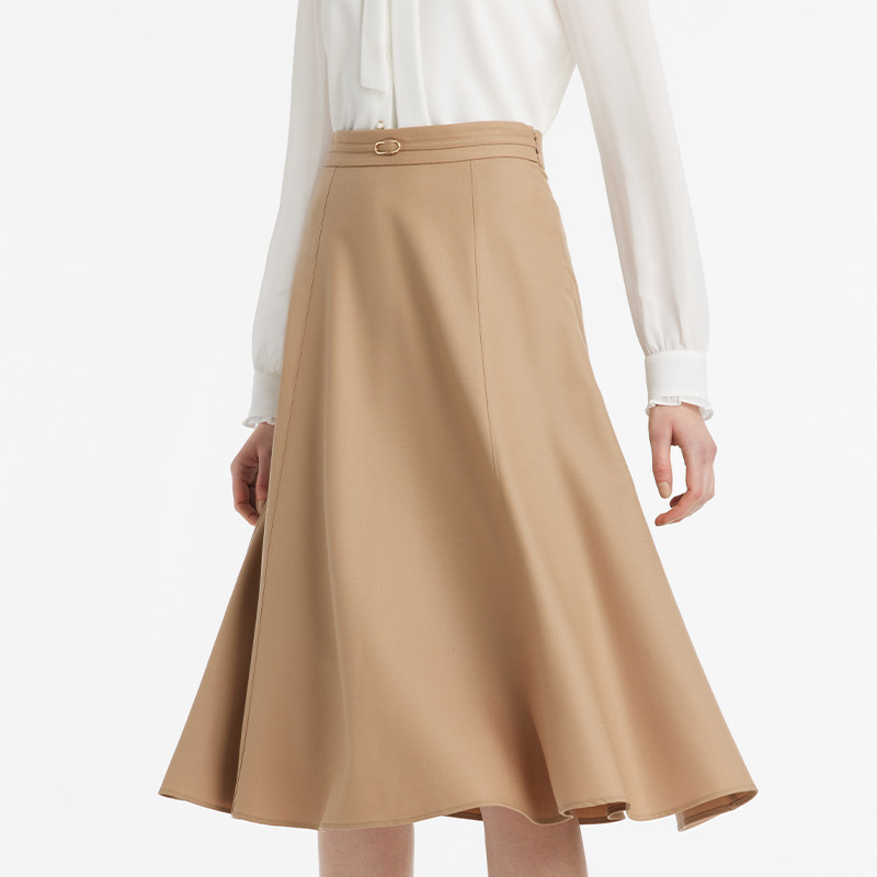 直降3折 气质通勤羊毛高腰压褶半截裙子 歌莉娅半身裙女春季