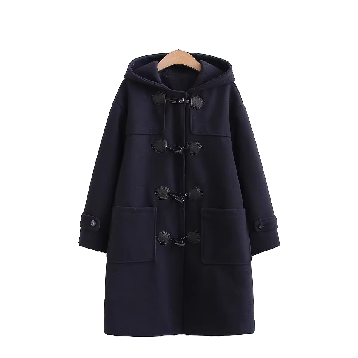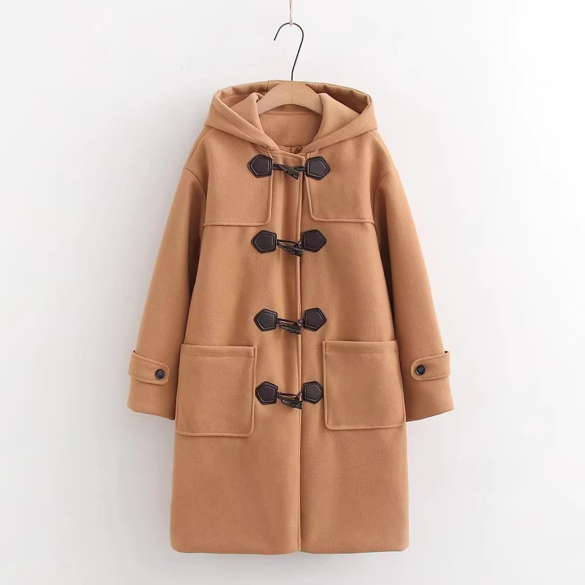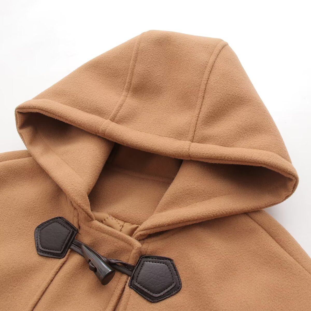 日系jk制服外套女秋冬季 学院风小个子加厚保暖牛角扣毛呢连帽大衣