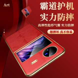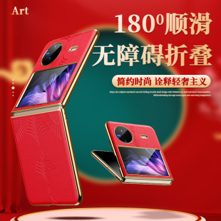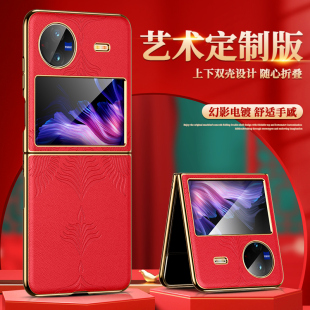 适用vivoxflip手机壳新款 真皮xflip折叠屏超薄全包防摔外壳高级指环支架vovo男女潮 艺术浮雕保护套5g电镀时尚