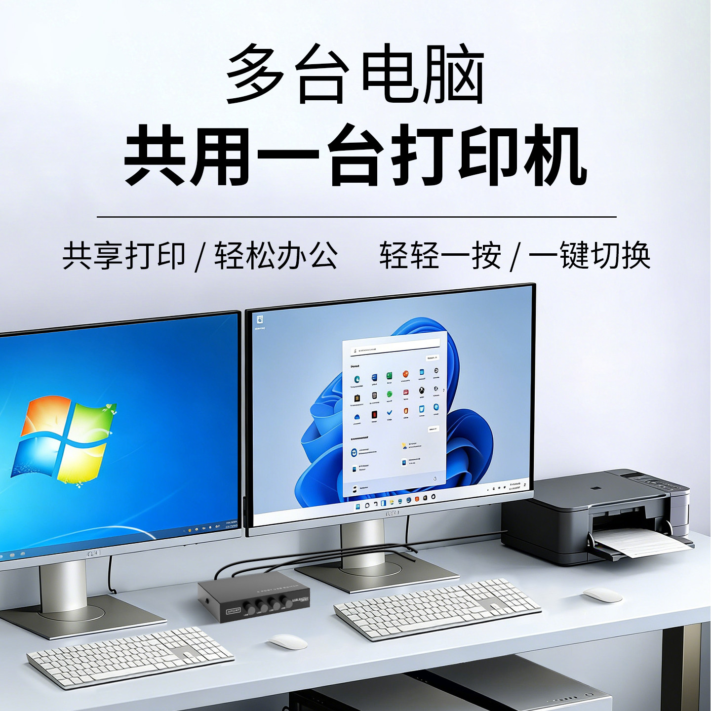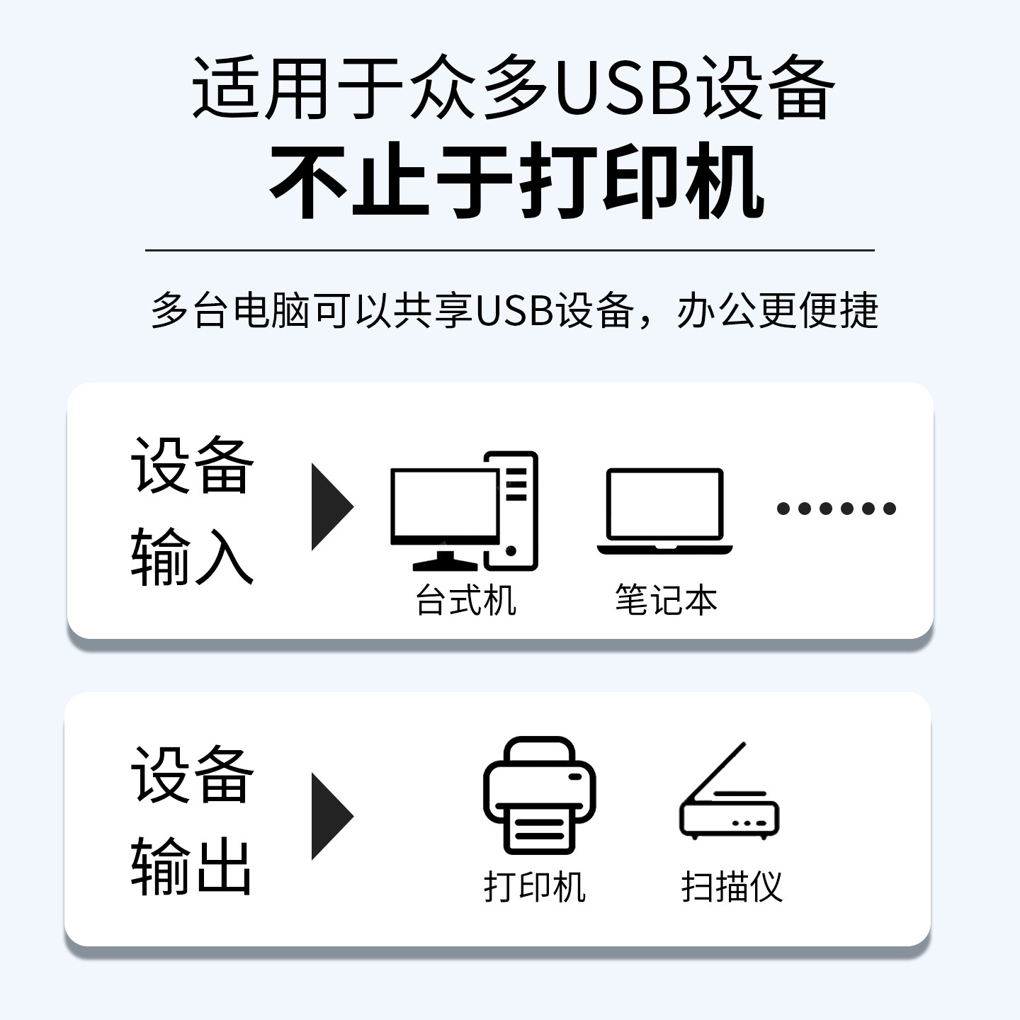 打印机共享器分线器一拖三一拖二usb转换器三台共用一拖四两台电脑共用数据线连接线一分二转接头4口切换器