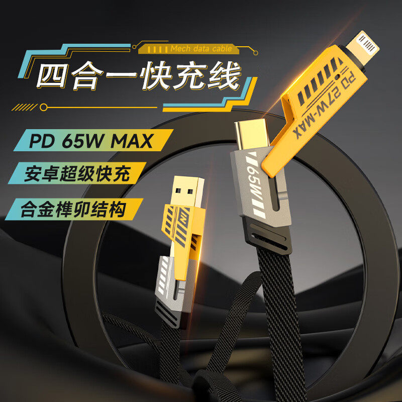 C接口通用适用华为苹果小米多头快充数据线 宣界机甲锌合金PD四合一快充线Type 阿里官方自营