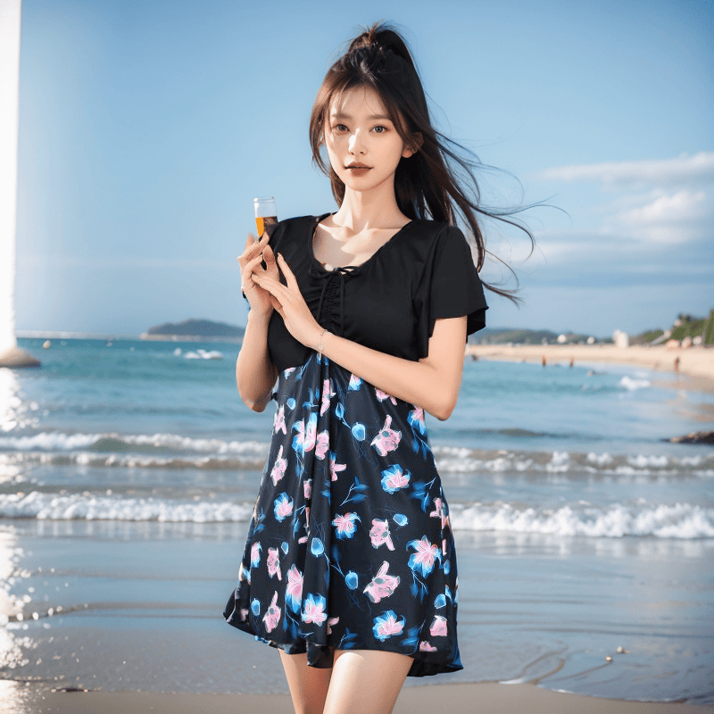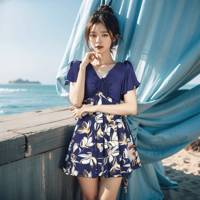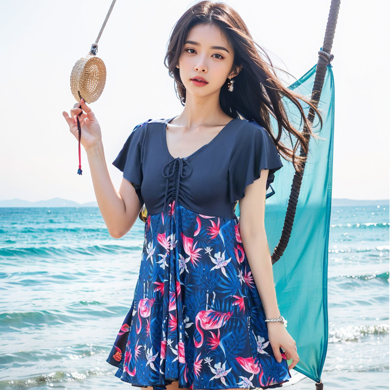 泳装 游泳衣大码 保守遮肉分体裙式 妈妈温泉泳衣中老年女士2024新款