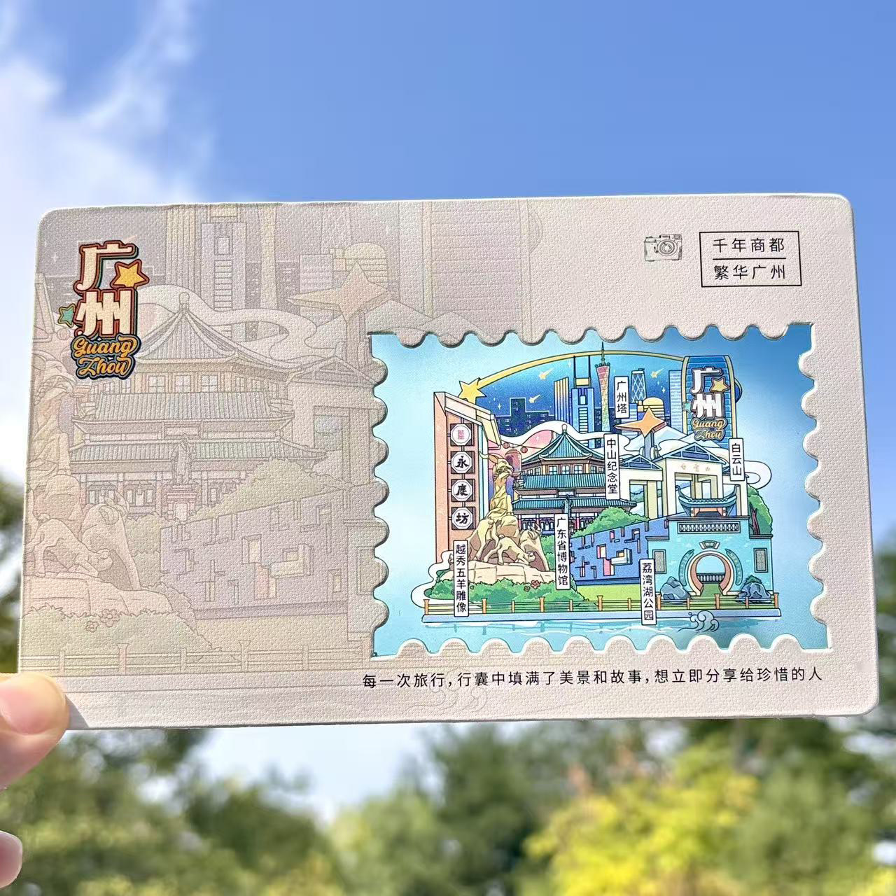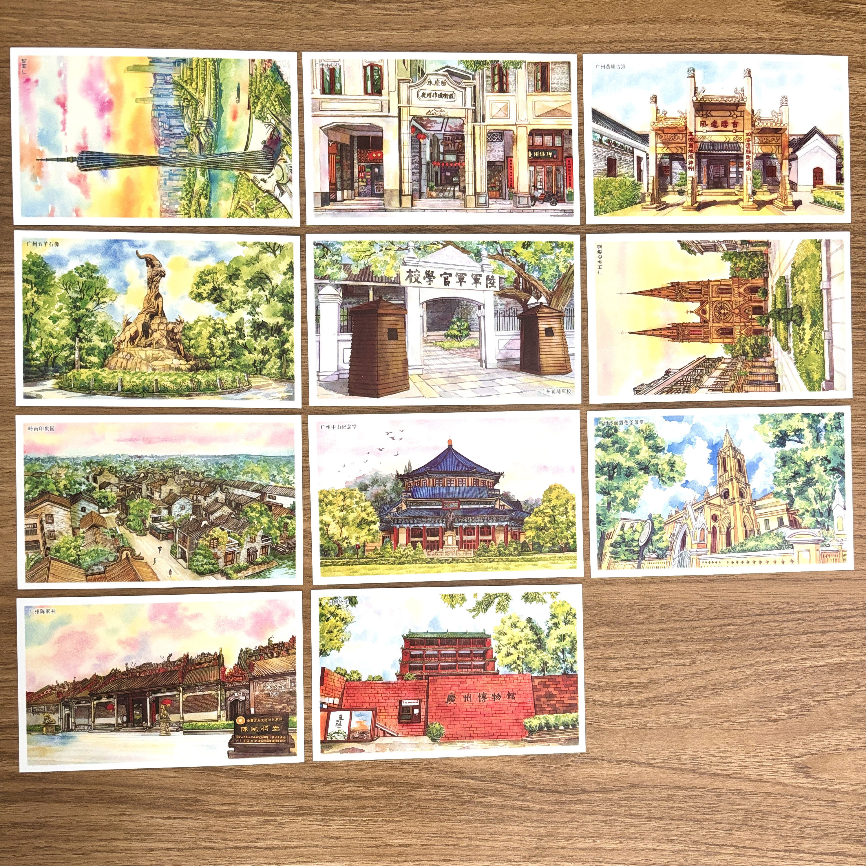 广州塔手绘透光明信片黄埔军校中山纪念堂五羊石像永庆坊旅游文创