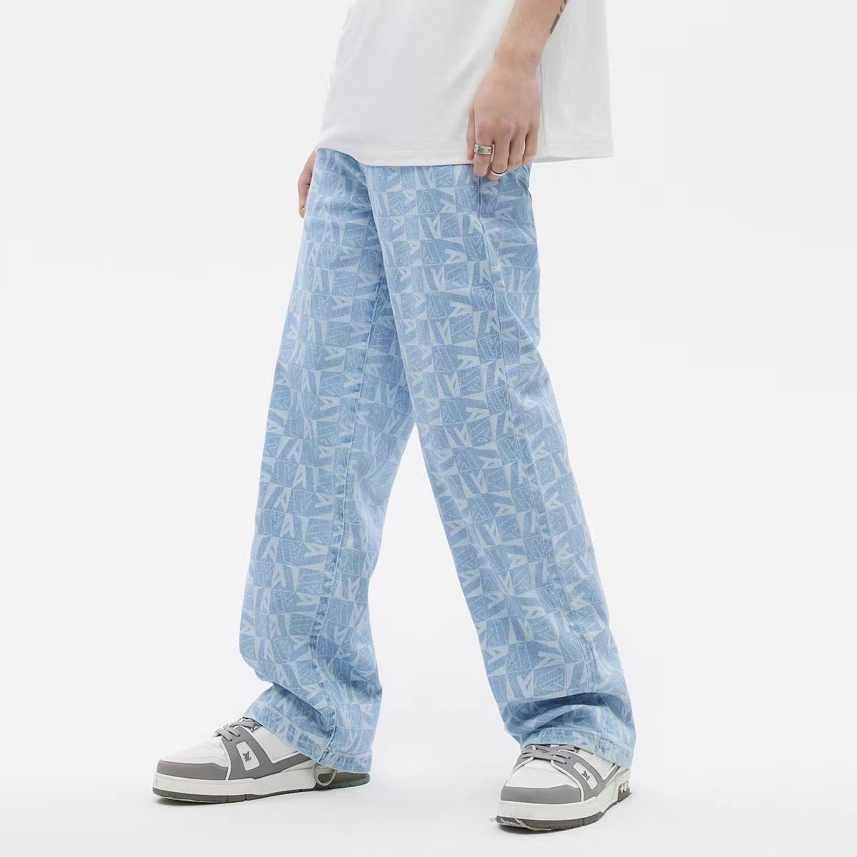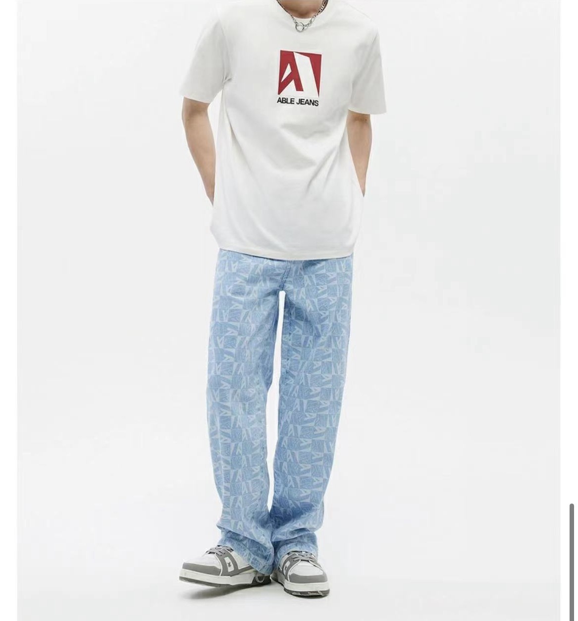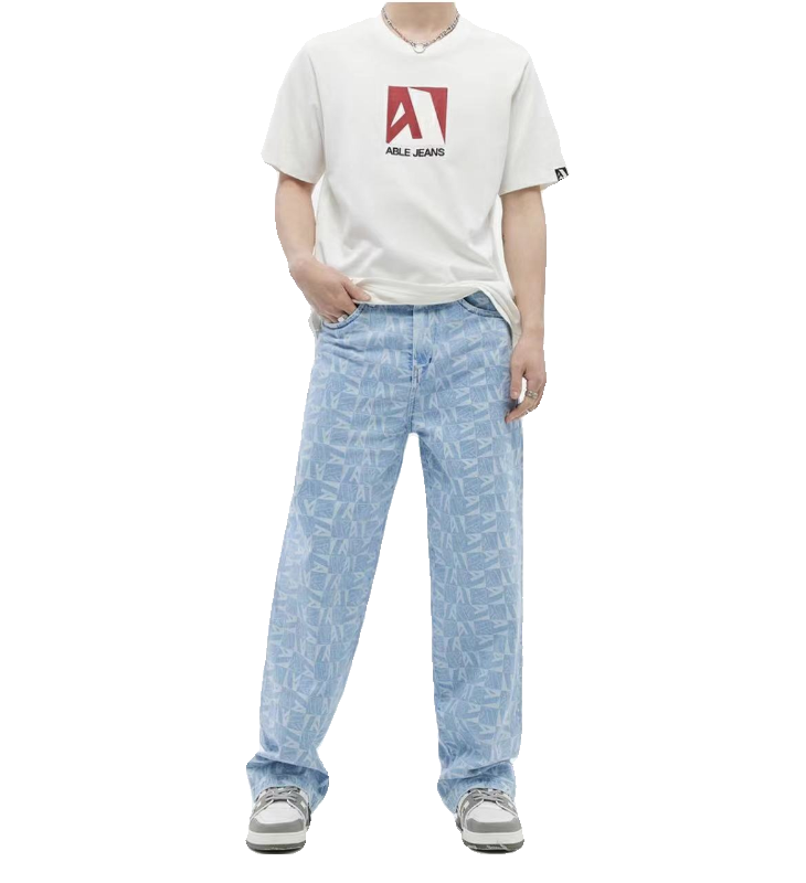 立体高腰宽松直筒印花休闲裤 中性款 春夏新品 JEANS男女牛仔裤 ABLE