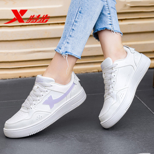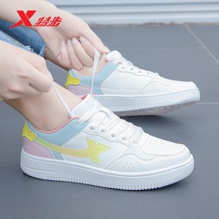 秋冬白鞋 皮面2025新款 透气鞋 子旗舰店女款 特步女鞋 软底运动鞋 板鞋