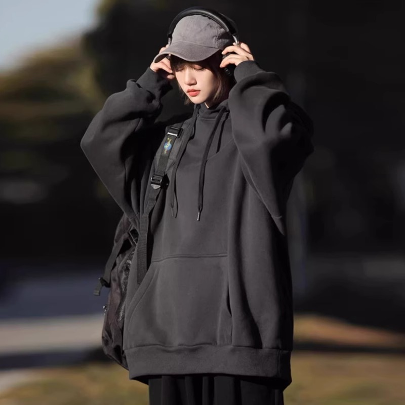 精品 男女同款 情侣装 2025春季 港风潮流纯色休闲卫衣 帽卫衣