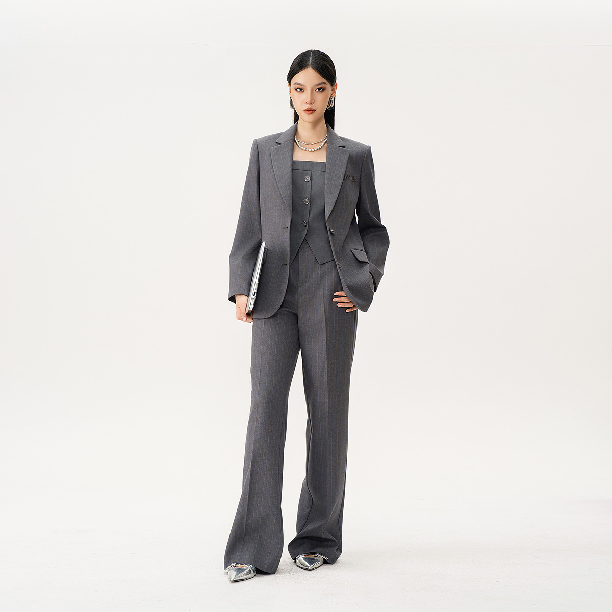 曼诺比菲商场同款 SGAS114071 春秋摩登简约灰色吊带马甲短款