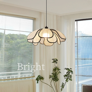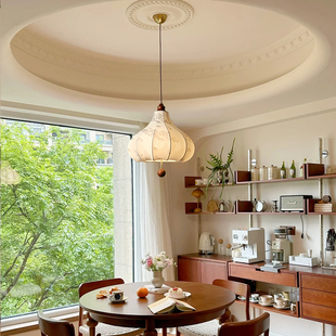 谷甸法式 中古风吊灯奶油风亚麻布艺卧室床头灯餐厅书房阳台小吊灯