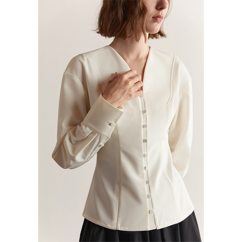 2025早春新款 女长袖 高级感通勤气质上衣 V领宫廷风衬衫 AEL原创法式