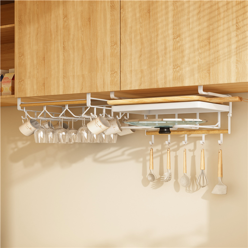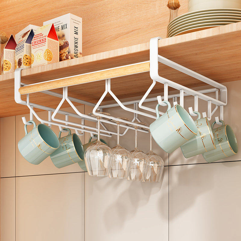 帅仕免打孔倒挂红酒杯架悬挂高脚杯橱柜下杯子收纳架子置物架高档