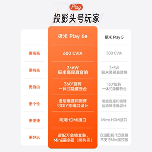 极米Play6高亮高清1080P家用投影仪内置电池便携投影机户外露营护眼大屏 立减15% 全国补贴