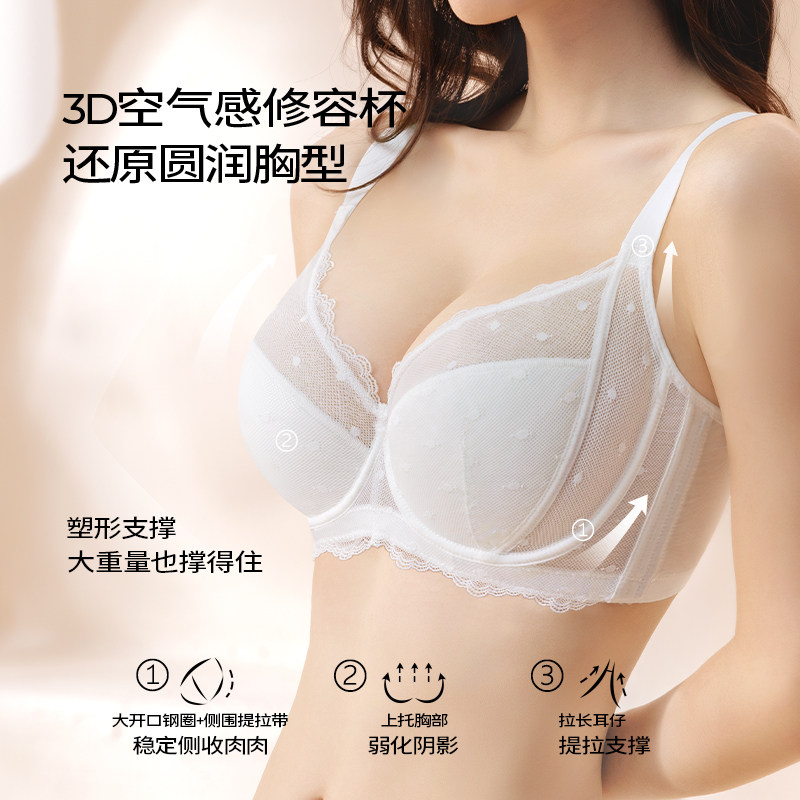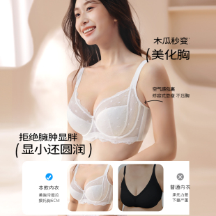 糖粒内衣女薄款 胖mm超薄性感聚拢收副乳防下垂文胸罩 大胸显小大码