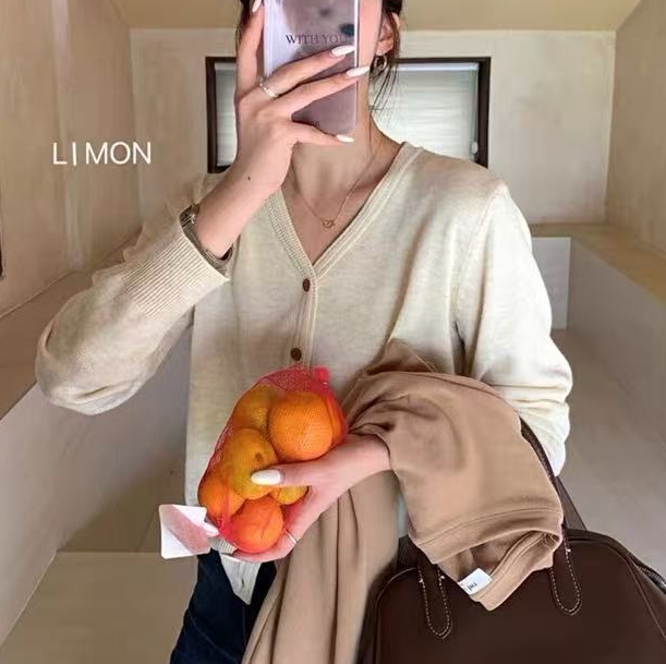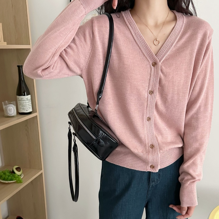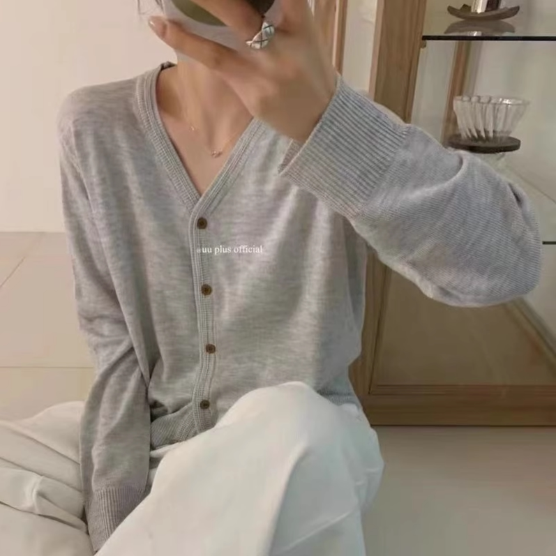 超细绵羊毛 宽松薄款 春季 新款 V领 穿搭气质洋气减龄针织开衫