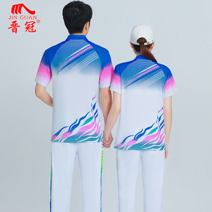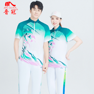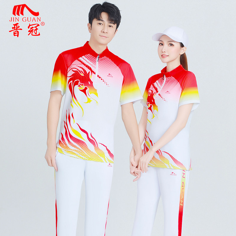 男女款 t恤运动套装 休闲上衣中老年广场舞团队服 速干短袖 晋冠新款