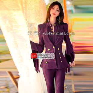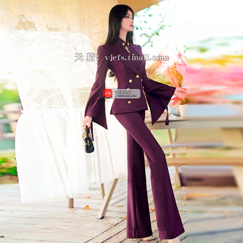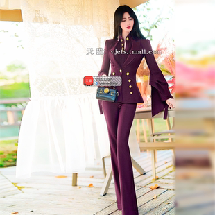 职业总裁套装 领高腰喇叭裤 新款 衬衫 三件套 设计感西装 VJE春季