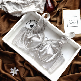 回购万年 缎面大胸显小超薄收副乳内衣本命年聚拢文胸软钢圈酒红