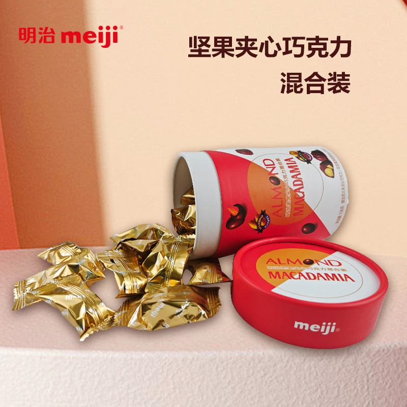 Meiji明治巧克力澳洲坚果夹心巧克力巴旦木混合156g桶装 过年零食