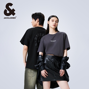 重磅棉 T恤宽松美式 杰克琼斯男装 情侣夏季 哥特印花打底衫 短袖