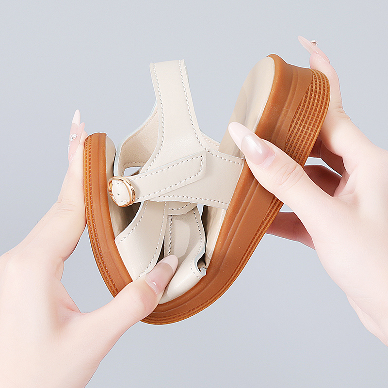 真皮凉鞋 一字扣女士休闲运动软底复古手工中老年妈妈 女2025年新款