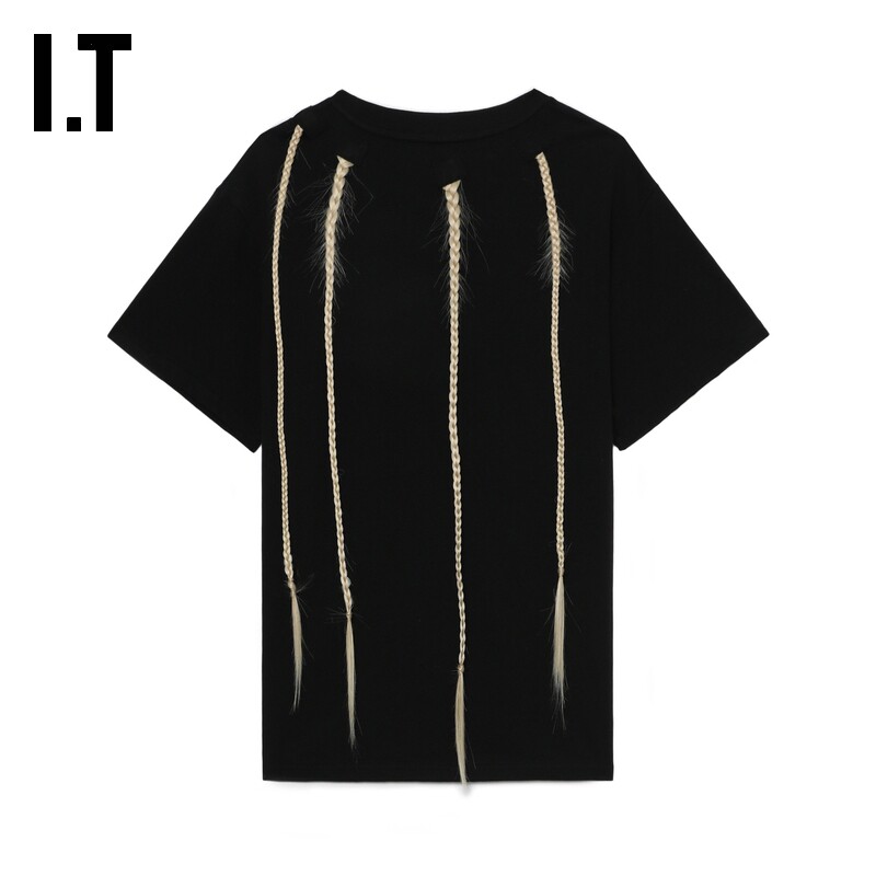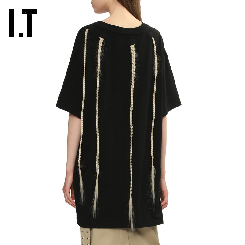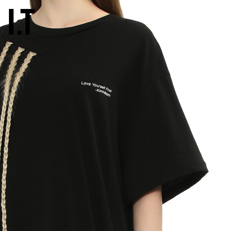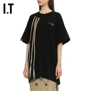 KIMHEKIM女装 时髦设计感麻花辫装 中长款 T恤新款 饰长上衣 短袖