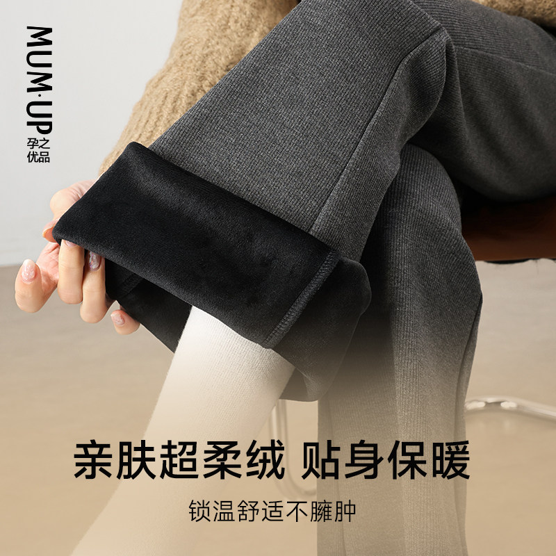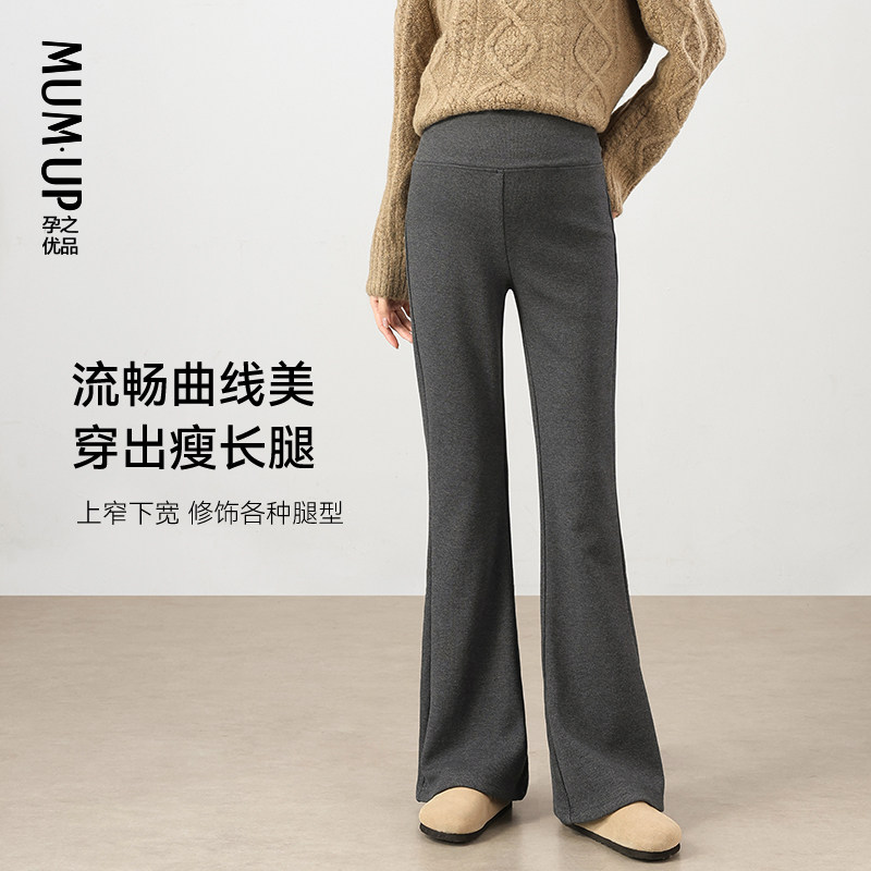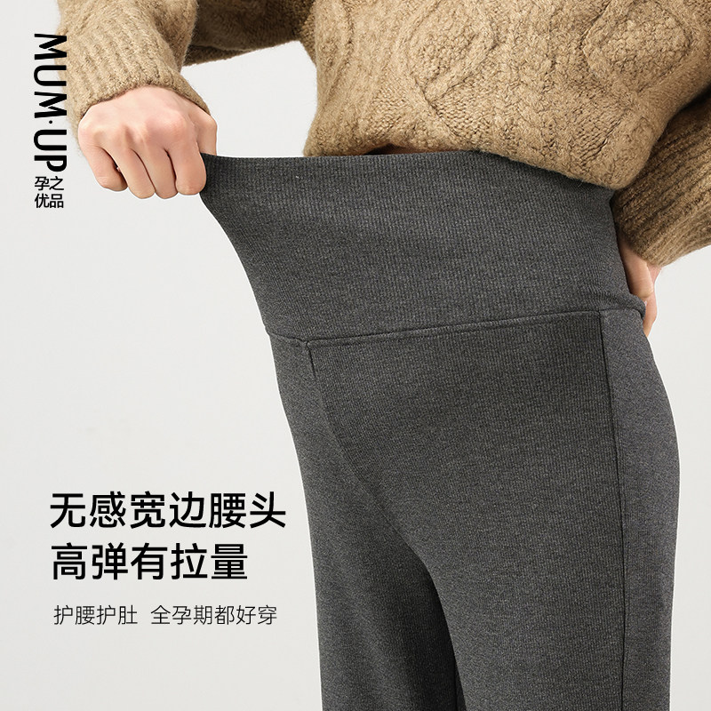 莫代尔加绒孕妇裤 孕之优品孕妇喇叭裤 秋冬托腹不勒肚子显瘦微喇裤