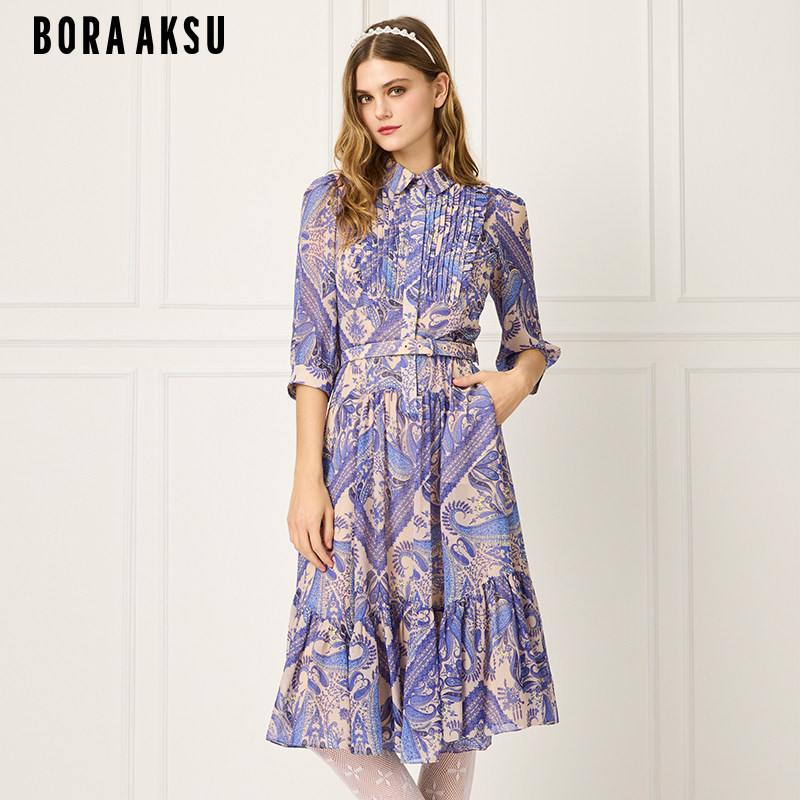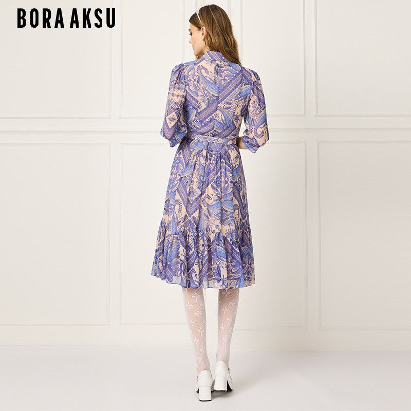 泡泡袖 BORAAKSU2025春季 法式 新品 佩斯利印花连衣裙B1FBW62040 时尚