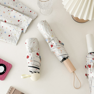奶油泼墨雨伞加大自动抗风晴雨两用防晒防紫外线女折叠小巧遮阳伞