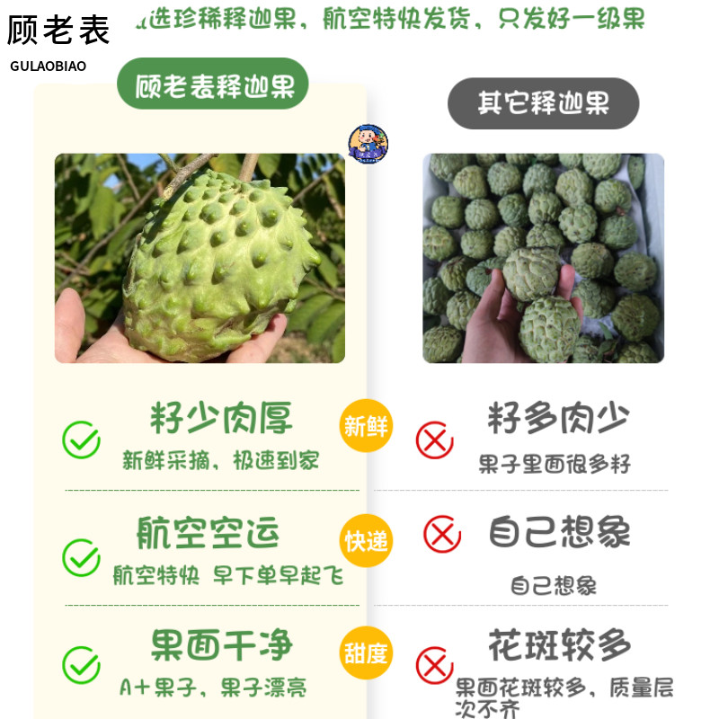 空运凤梨释迦果新鲜番荔枝5斤牛奶林檎摩尼大果水果版 谋释迦 纳元
