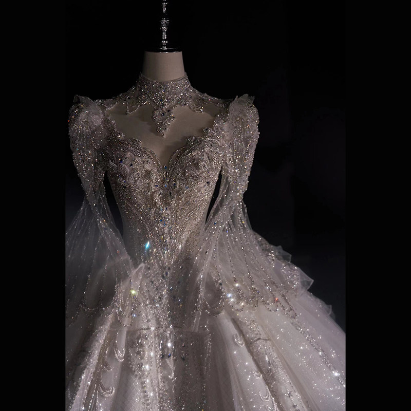 SainteYunne上与 原创高级礼服婚纱晨袍裙春夏LQ725 高贵白雪