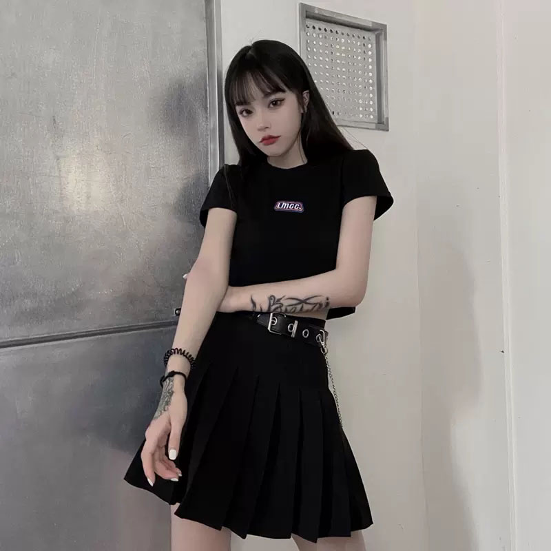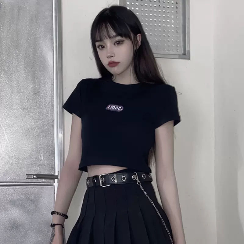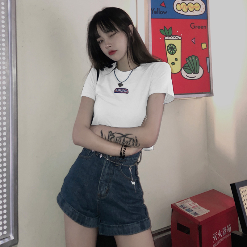 短袖 t恤女夏季 宽松白色纯棉高腰露脐打底上衣潮 正肩短款 2025新款