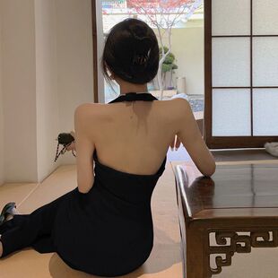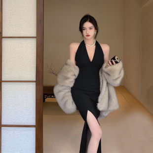显瘦包臀长裙 胖mm高级感修身 大码 300斤漏背开叉挂脖连衣裙女夏季