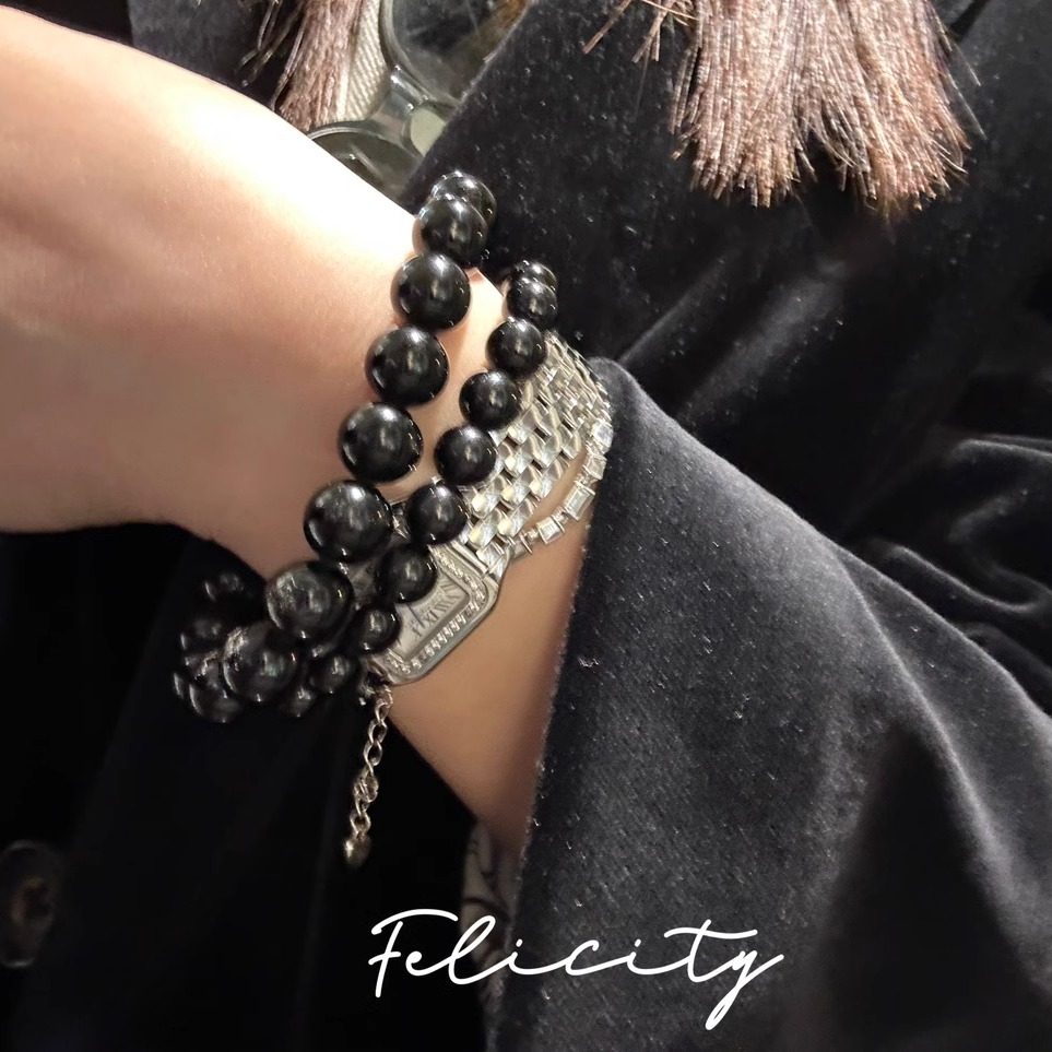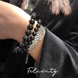 天然黑碧玺手串Schrol电气石暗黑风水晶男女情侣纯黑色手链