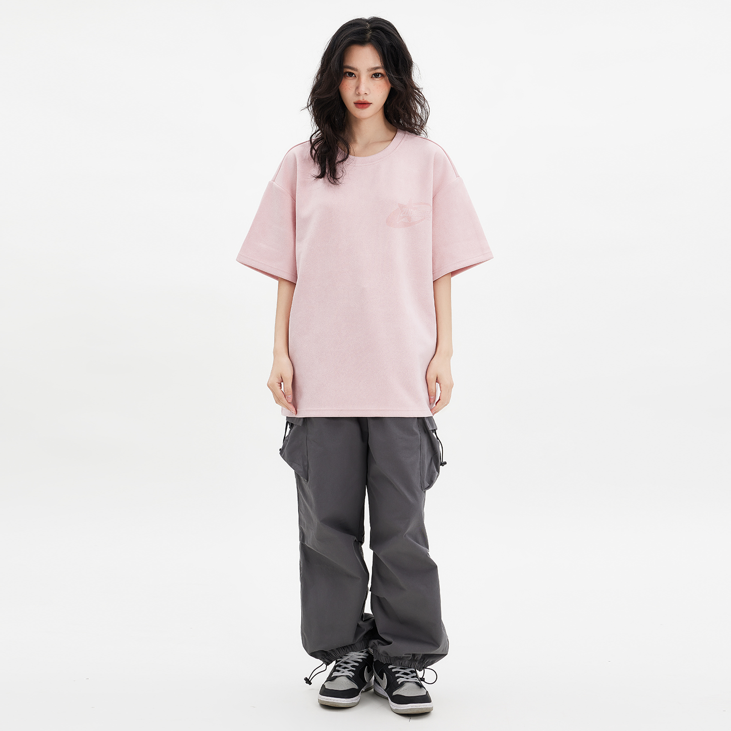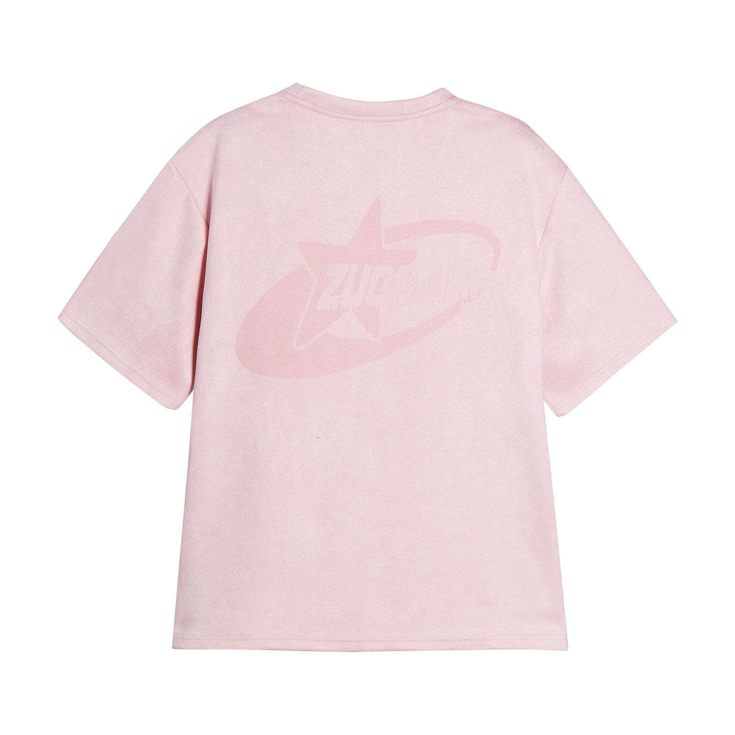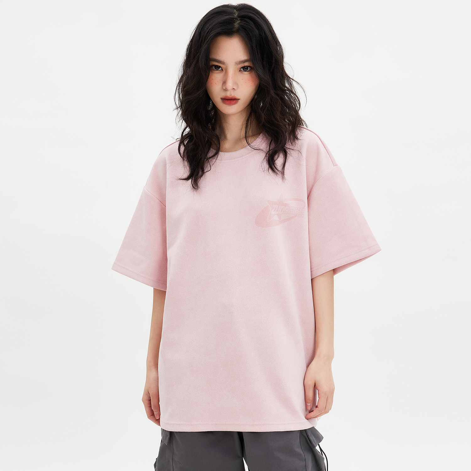 半袖 佐贝卡潮牌粉色麂皮短袖 复古印花宽松情侣装 美式 T恤女夏新款
