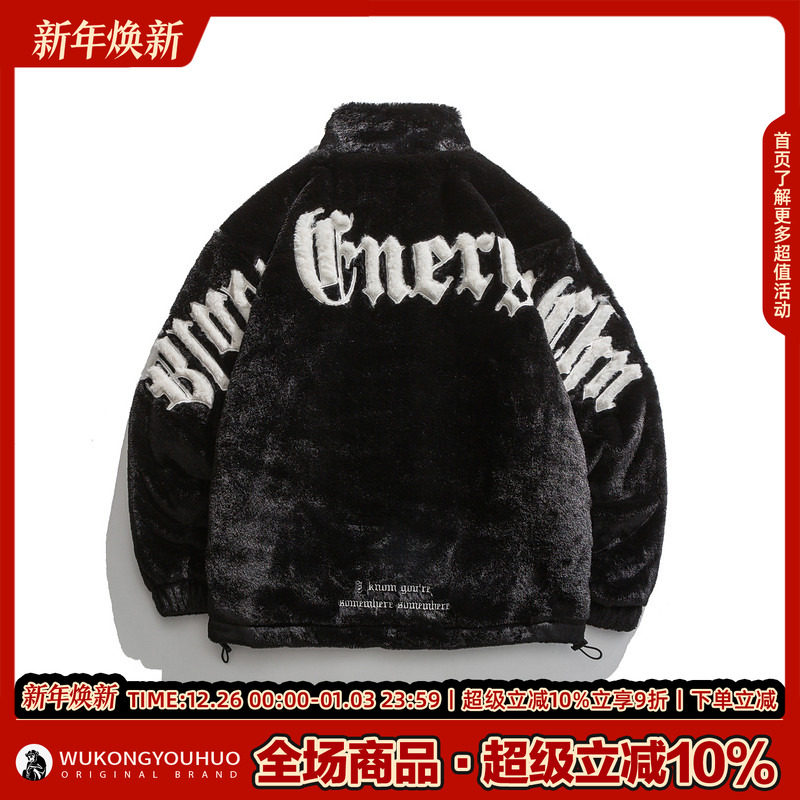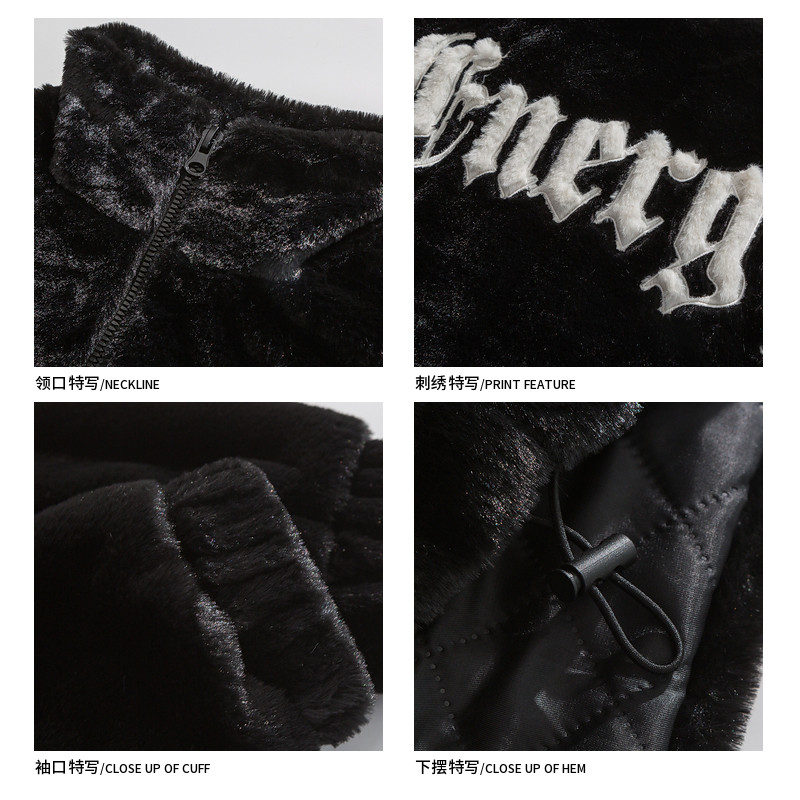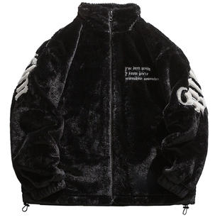 黑色休闲百搭连帽夹克上衣 胖mm双面穿毛绒棉服外套女冬季 大码 女装