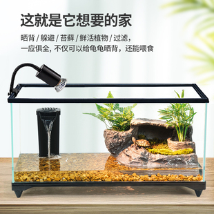 乌龟饲养缸生态造景家用玻璃缸小型别墅水陆两用养乌龟专用缸鱼缸
