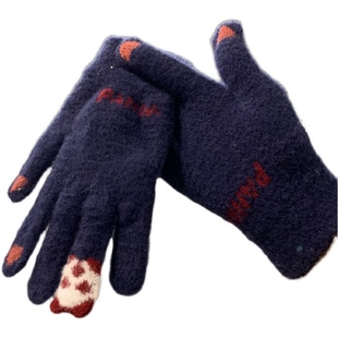 小熊猫可爱加绒加厚手套女ins保暖学生骑车防风防寒可触屏冬季 男