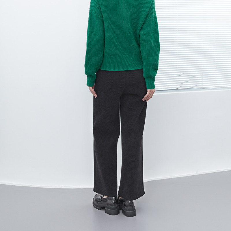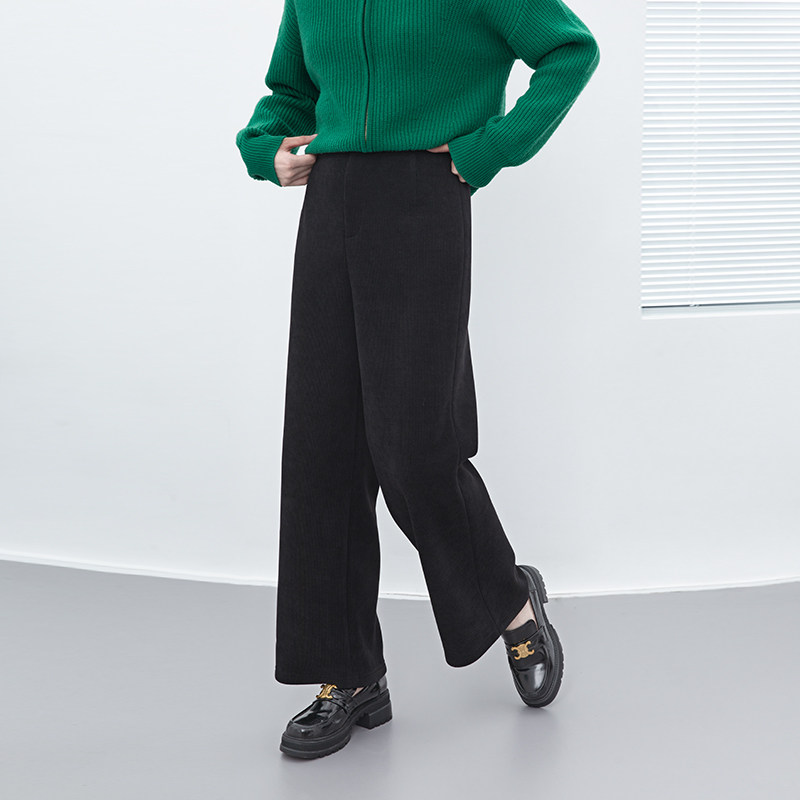 高腰宽松休闲百搭直筒长裤 灯芯绒夹棉阔腿裤 秋冬新款 诗梦女装