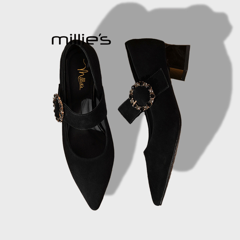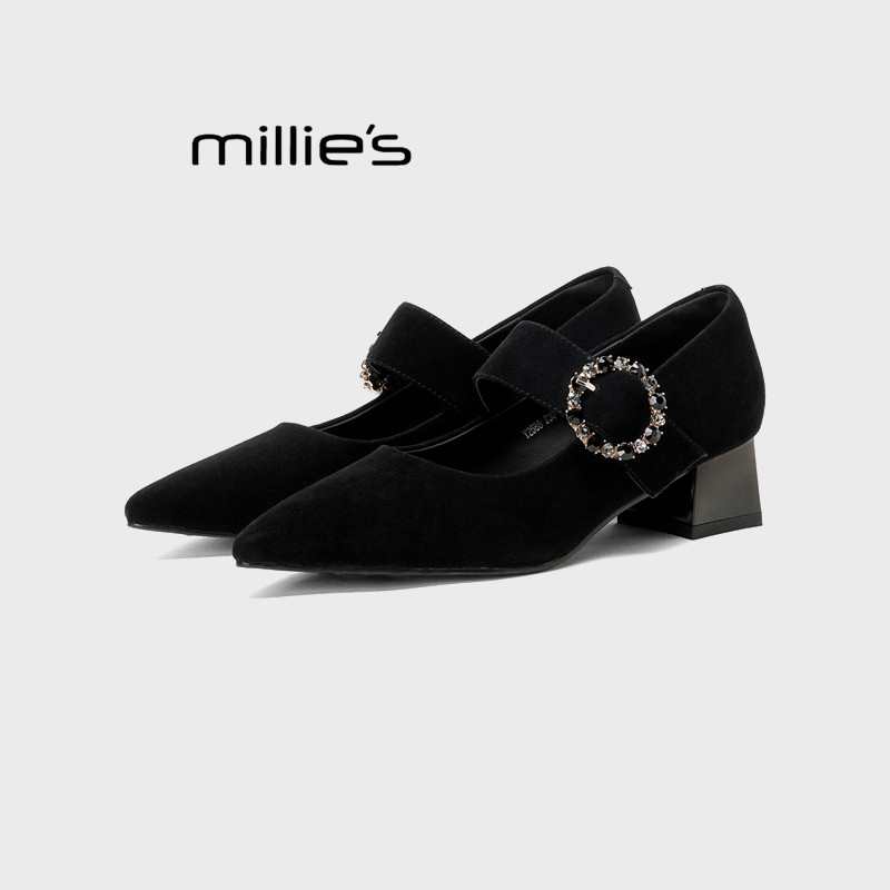 加绒保暖女浅口单鞋 百思图2025冬季 玛丽珍鞋 毛毛鞋 F1812DQ5 新款