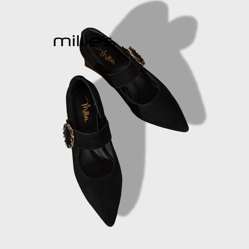 莎黛尔2025冬季 饰浅口平底韩版 新款 扣带装 玛丽珍 毛毛鞋 H55女鞋