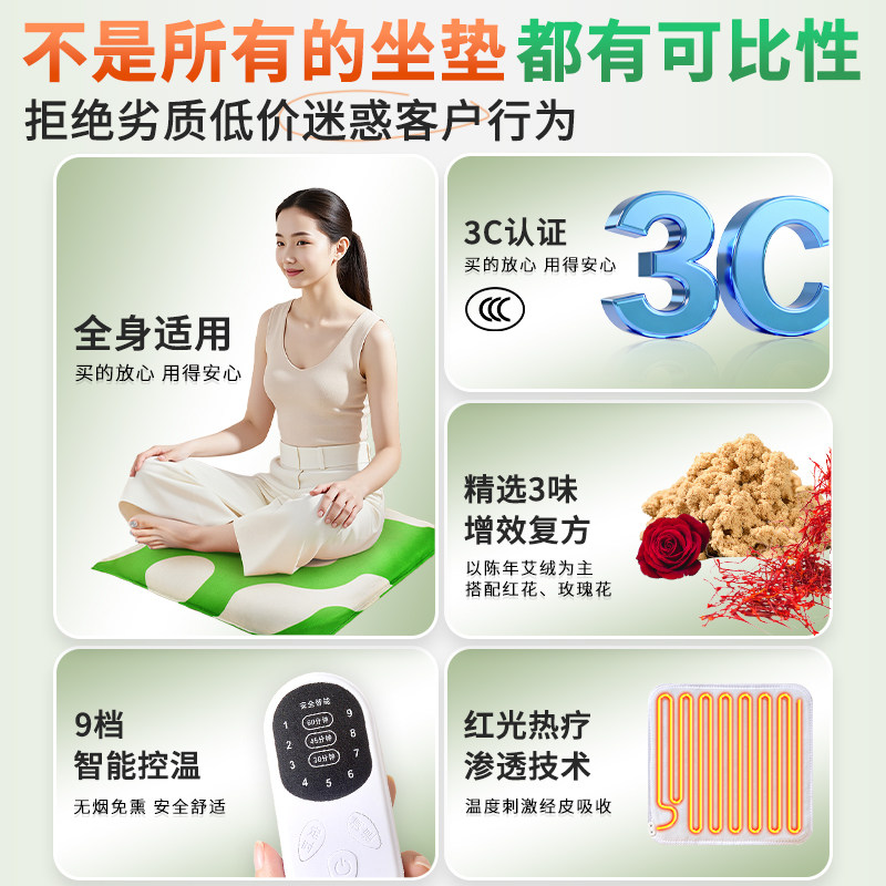 艾灸坐垫电加热陈艾绒艾草热敷包办公室发热毯艾蒿臀部屁股座垫子
