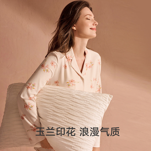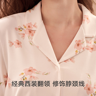 女生睡衣睡裤 曼妮芬女士家居服舒适西装 套装 长裤 翻领开襟长袖
