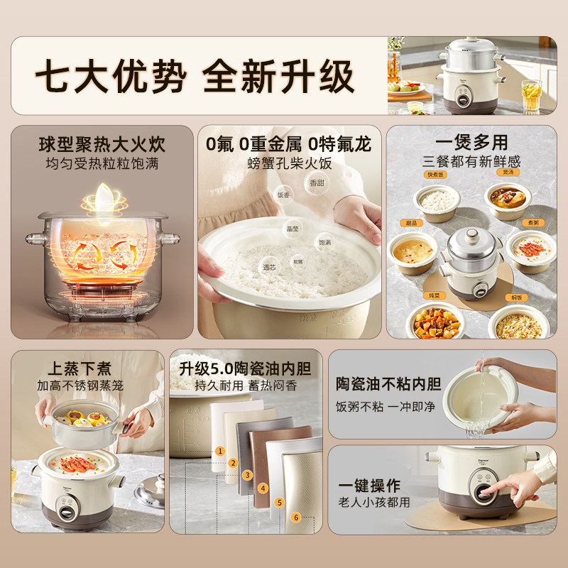 官方旗舰店2025新款 4人柴火饭正品 电饭煲4L陶瓷釉内胆家用3 美