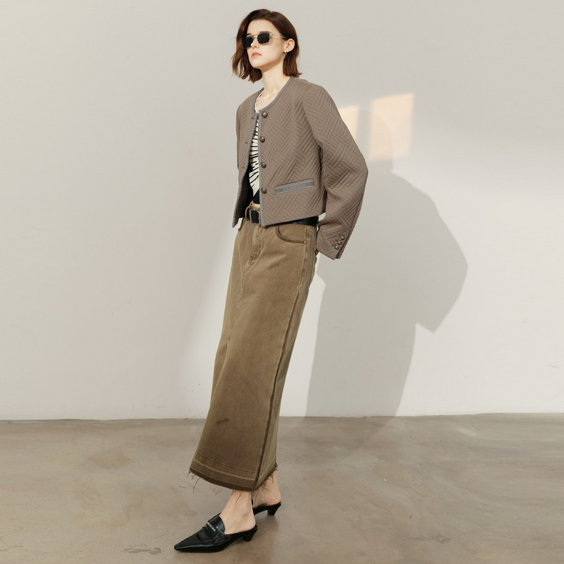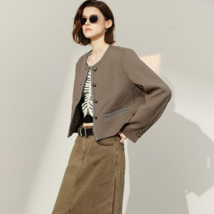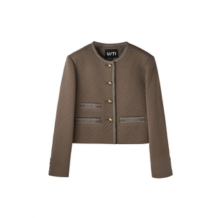 新款 上衣尤缇2025春季 TI军绿色老钱风小香外套女百搭肌理感短款