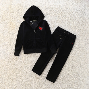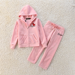 连帽春秋长袖 女童儿童卫衣外套修身 coconut天鹅绒运动套装 juicy