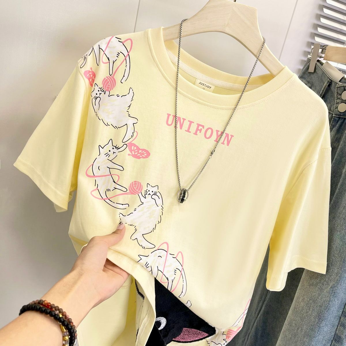 体恤休闲宽松上衣潮 饰短袖 原创21支210g精梳纯棉美式 复古卡通装