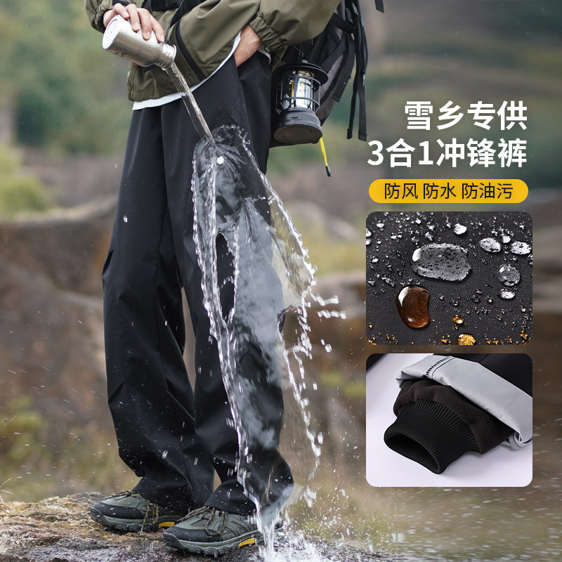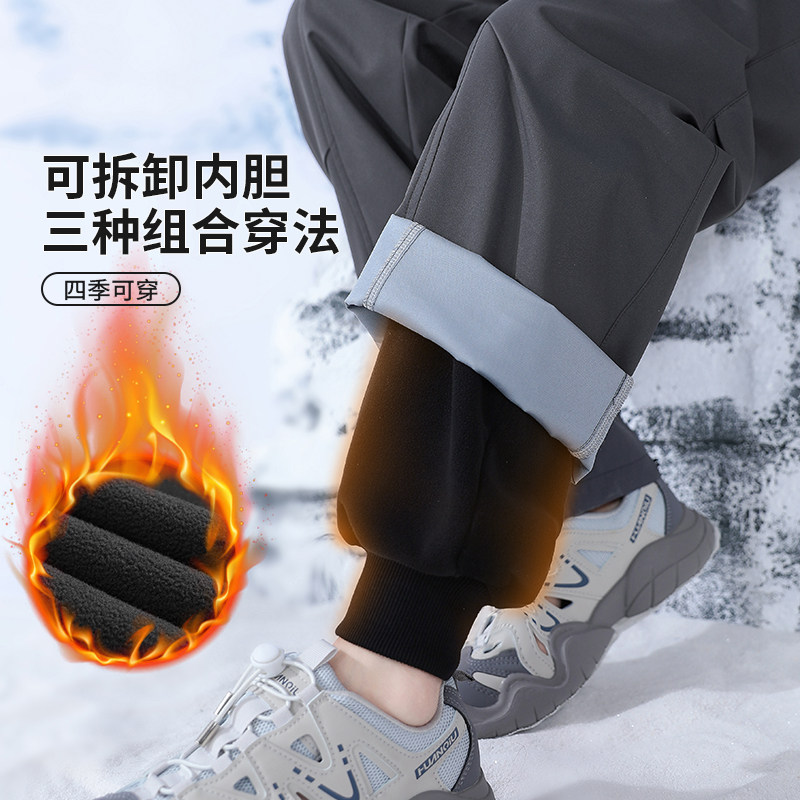 男款 冲锋裤 冬季 男士 子男 外穿加绒加厚羊羔绒防风保暖裤 啄木鸟棉裤