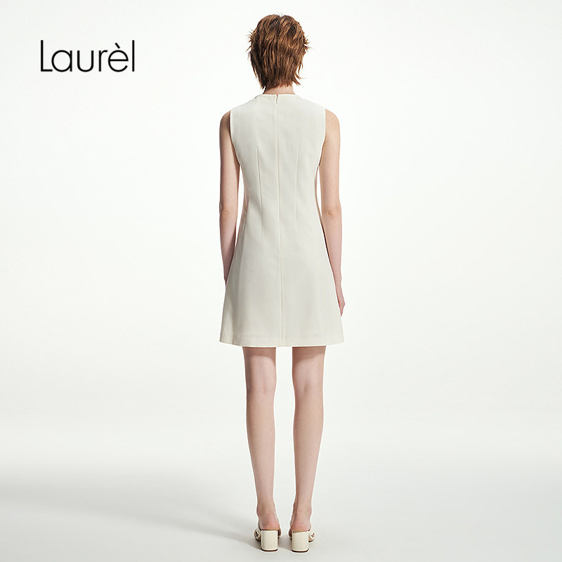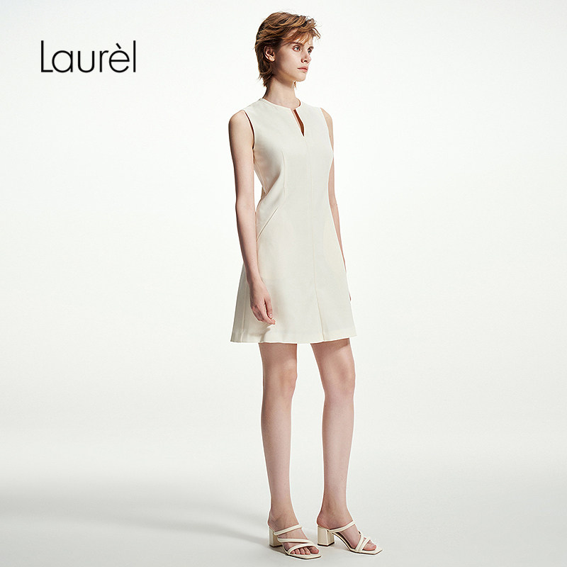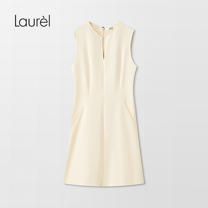 Laurel劳芮春夏新款 收腰淡人极简连衣裙LWD351Y01100 小V领无袖