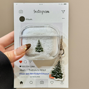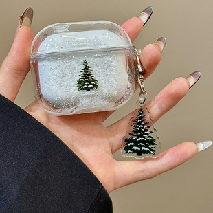 趣味解压流沙雪花圣诞树适用苹果耳机保护套airpods4壳蓝牙新款 airpodspro2三代二女ipods3高级感小众1airpod