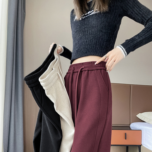 佐梦依加绒加厚休闲裤 弯刀阔腿裤